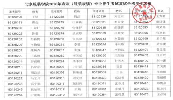 2018年北京服裝學(xué)院表演專業(yè)復(fù)試合格考生名單