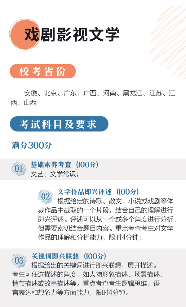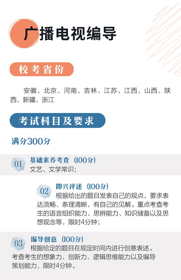 點(diǎn)擊查看更多與《河北傳媒學(xué)院2022年藝術(shù)類校考專業(yè)考試科目》相關(guān)的信息