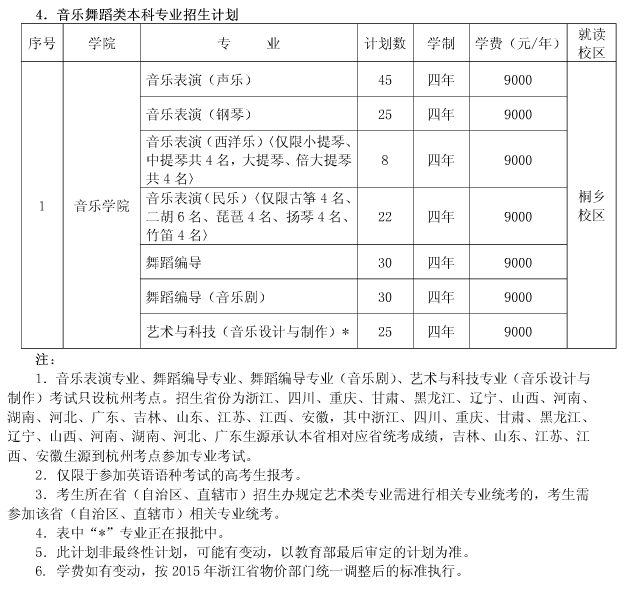 2015年浙江傳媒學(xué)院藝術(shù)類專業(yè)招生計劃