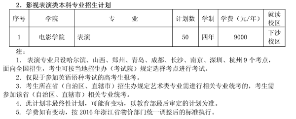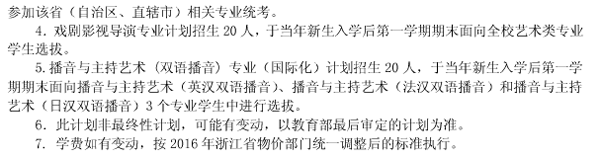 2016年浙江傳媒學(xué)院藝術(shù)類專業(yè)招生計劃