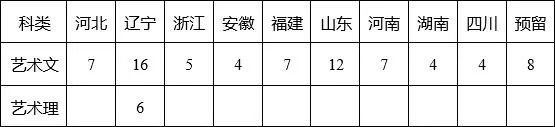 注: 根據(jù)各省級招生考試機構(gòu)要求,藝術(shù)類考生不分文理的省份,我校招生計劃不分文理,統(tǒng)一錄取。 預(yù)留計劃在錄取時根據(jù)各省生源情況調(diào)劑使用。