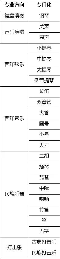 1.音樂表演專業(yè)辦學層次為本科,學制4年,外語語種為英語,學費標準為10000元/年。 招生專業(yè)方向及專門化如下: