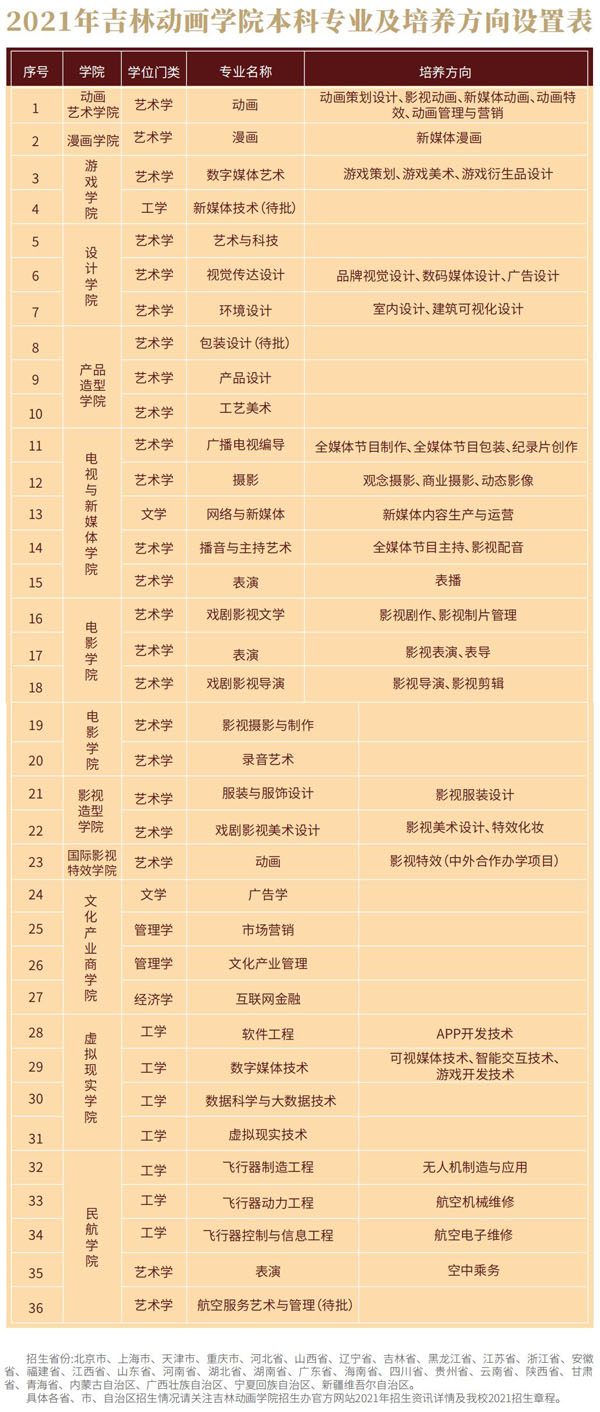 吉林動(dòng)畫(huà)學(xué)院2021年藝術(shù)類(lèi)本科專業(yè)招生計(jì)劃