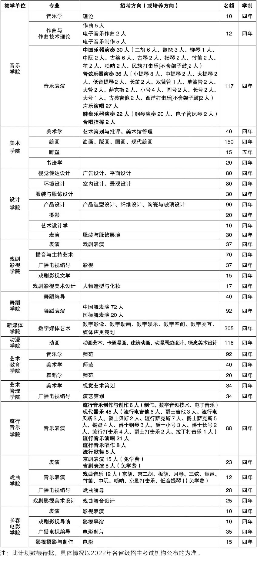 注:表演(影視表演)和戲劇影視導(dǎo)演(影視導(dǎo)演)專業(yè)暫定在戲劇影視學(xué)院培養(yǎng);影視攝影與制作(電影)專業(yè)暫定在新媒體學(xué)院培養(yǎng);廣播電視編導(dǎo)(電影制片)專業(yè)暫定在藝術(shù)管理學(xué)院培養(yǎng)。