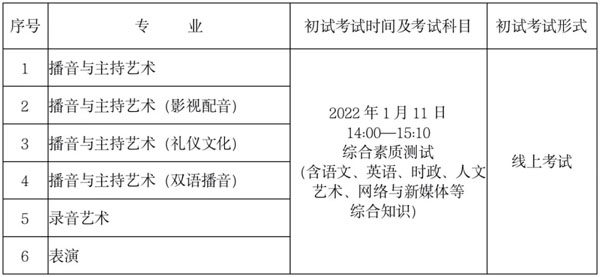 【注】:以上廣電藝術(shù)類本科專業(yè)(方向)面向全國招生,考生按各省考試院(招生辦)規(guī)定參加我校組織的考試。