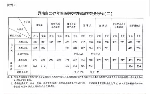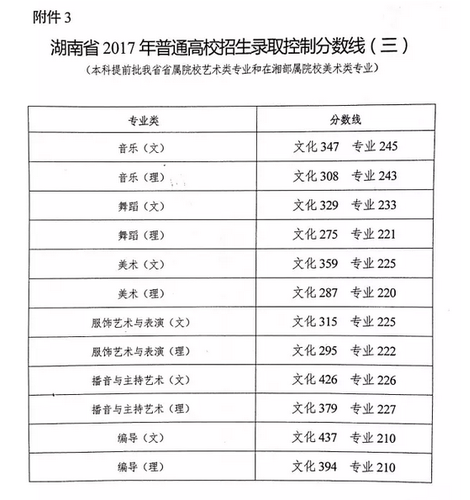 2017年湖南高考錄取控制分?jǐn)?shù)線
