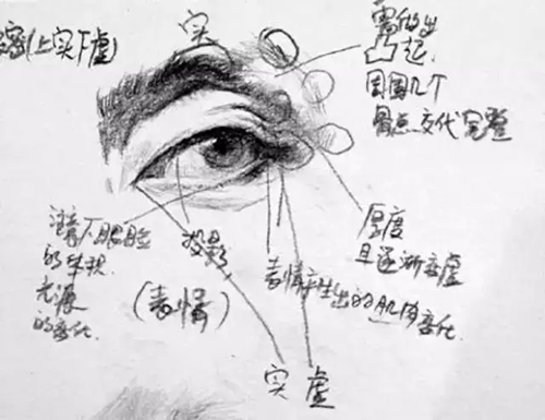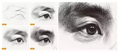 頭像里,眼睛的重要性是不言而喻的。作畫時,應(yīng)把握好它的角度,厚度,深度以及細節(jié)的刻畫。