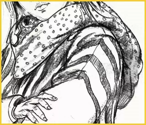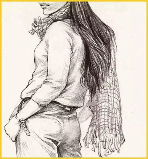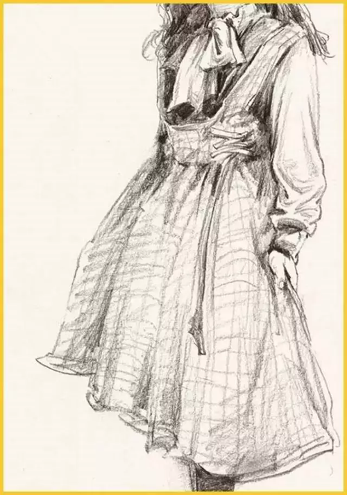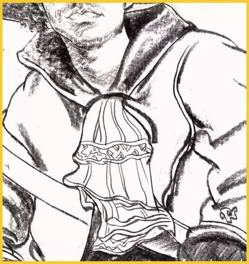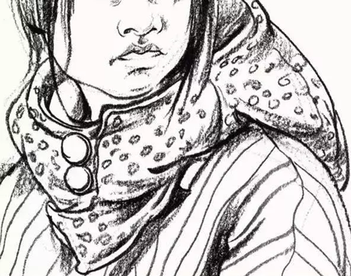 衣領:衣領的畫法是對頸肩銜接的交代,也是整個畫面的支撐。人體結構與運動也決定著衣紋的變化畫衣領時要抓住形體轉折的衣紋來著重表現(xiàn), 盡量將頸部和肩部之間的前后和銜接關系處理好。并且, 還要盡量通過衣紋的變化暗示出下方的骨骼和肌肉的基本形。
