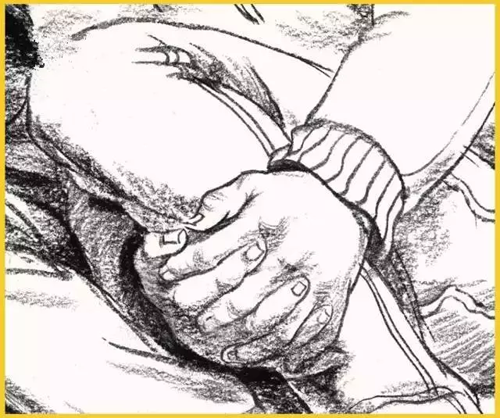 畫手要把握好胳膊、手腕及手三者間的轉折、屈伸的節(jié)奏關系,勾畫出手部的特有感覺。可以頭部作為參照畫出手臂,通過與頭部的比較,來確定手的位置、大小,但要注意手與頭部的呼應。