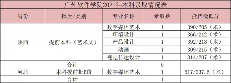 廣州軟件學(xué)院2021年美術(shù)類本科專業(yè)錄取分?jǐn)?shù)線(7月30號更新)