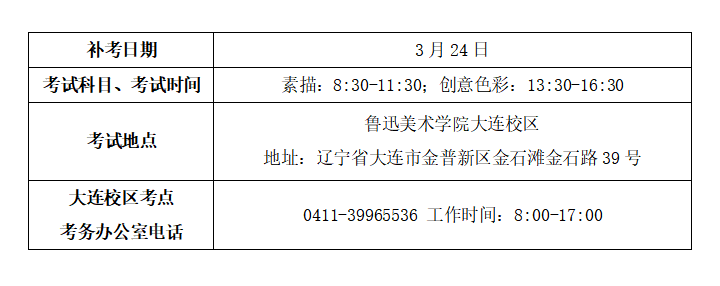 經(jīng)學(xué)院研究決定,于3月24日在我院大連校區(qū)考點(diǎn)對(duì)確因受此次沙塵暴天氣影響導(dǎo)致航班延誤未能按時(shí)參加我院3月16日考試的考生組織補(bǔ)考。請(qǐng)相關(guān)考生于3月22日17點(diǎn)前電話聯(lián)系大連校區(qū)考點(diǎn)考務(wù)辦公室,提供考生原報(bào)考信息、延誤航班信息等,并確定補(bǔ)考考試科目(已經(jīng)參加的考試科目不再另行組織),逾期不予受理。