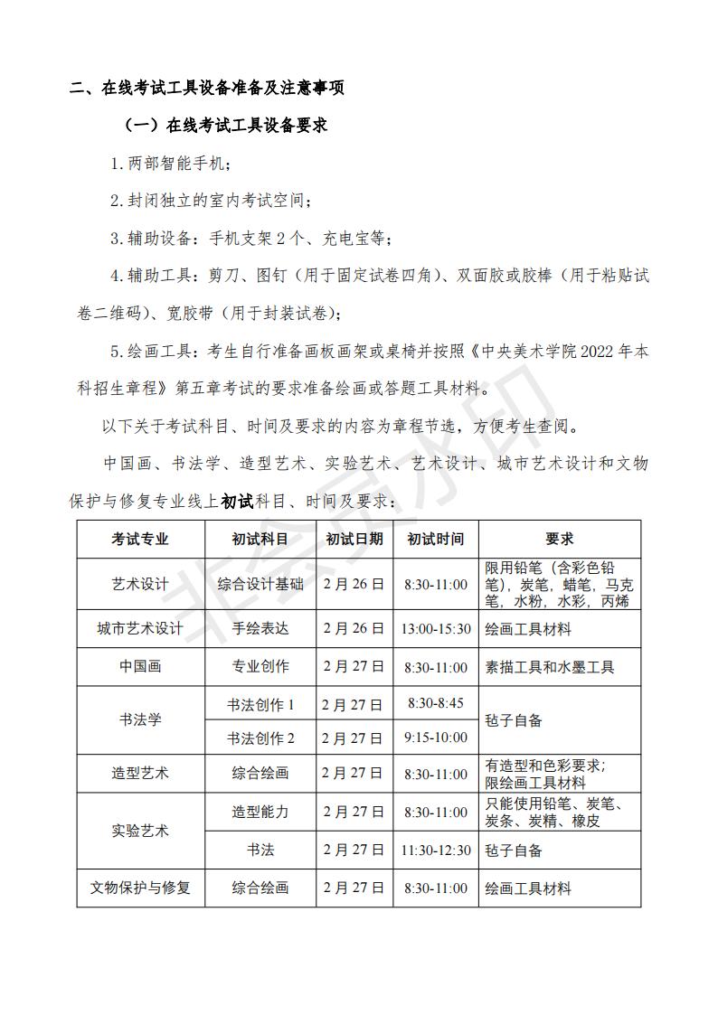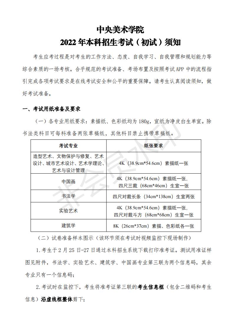 中央美術(shù)學(xué)院2022年本科招生考試(初試)須知