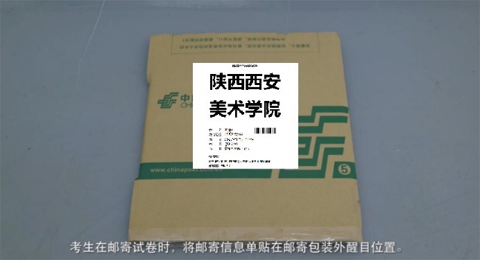 考生需提前電腦登錄“藝術(shù)升”網(wǎng)頁版(https://www.artstudent.cn),點擊“打印中心”后查看并打印郵寄信息單,并對中國郵政5號箱按下圖所示進行粘貼和包裝。全部科目答題卷統(tǒng)一封裝進一個中國郵政5號箱內(nèi)寄出。