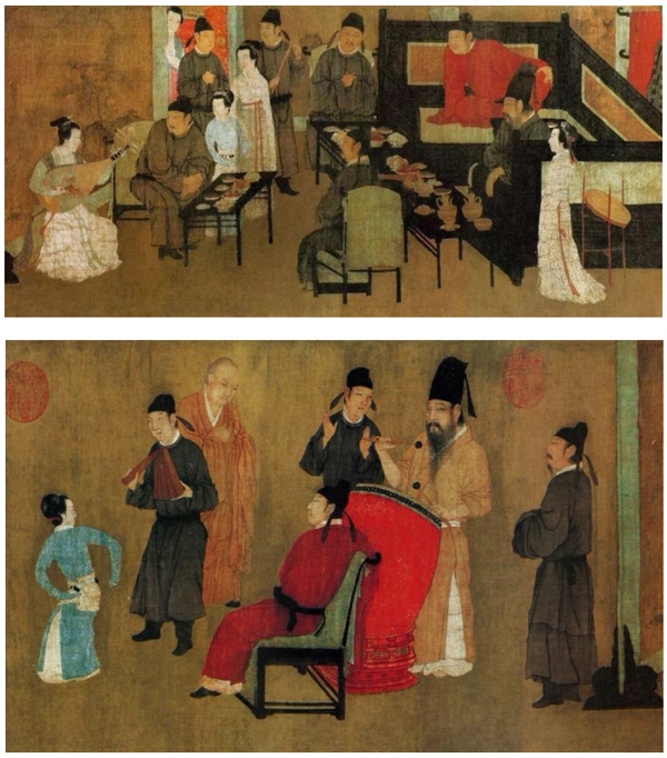 中國畫對(duì)物象的觀察往往采取“以神遇而不以目視”的方式,不局限于真實(shí)物理現(xiàn)象的描繪,被稱為“走馬觀花”“景隨心移”。人物畫則經(jīng)常為了突出主體人物而不畫背景,并機(jī)動(dòng)地處置主次人物的比例。如《韓熙載夜宴圖》就是其典型代表作。