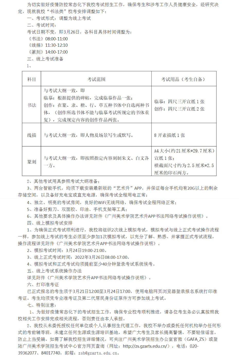 廣州美術(shù)學(xué)院2022年書法類??颊{(diào)整